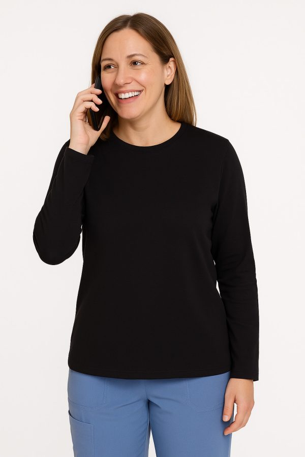 T-shirt damski medyczny z długim rękawem ClinicLine Comfort to idealny wybór dla pielęgniarek, lekarek i wszystkich kobiet pracujących w służbie zdrowia. Wykonany w 100% z bawełny stabilizowanej, zapewnia wyjątkowy komfort noszenia, miękkość oraz trwałość nawet po wielu praniach.